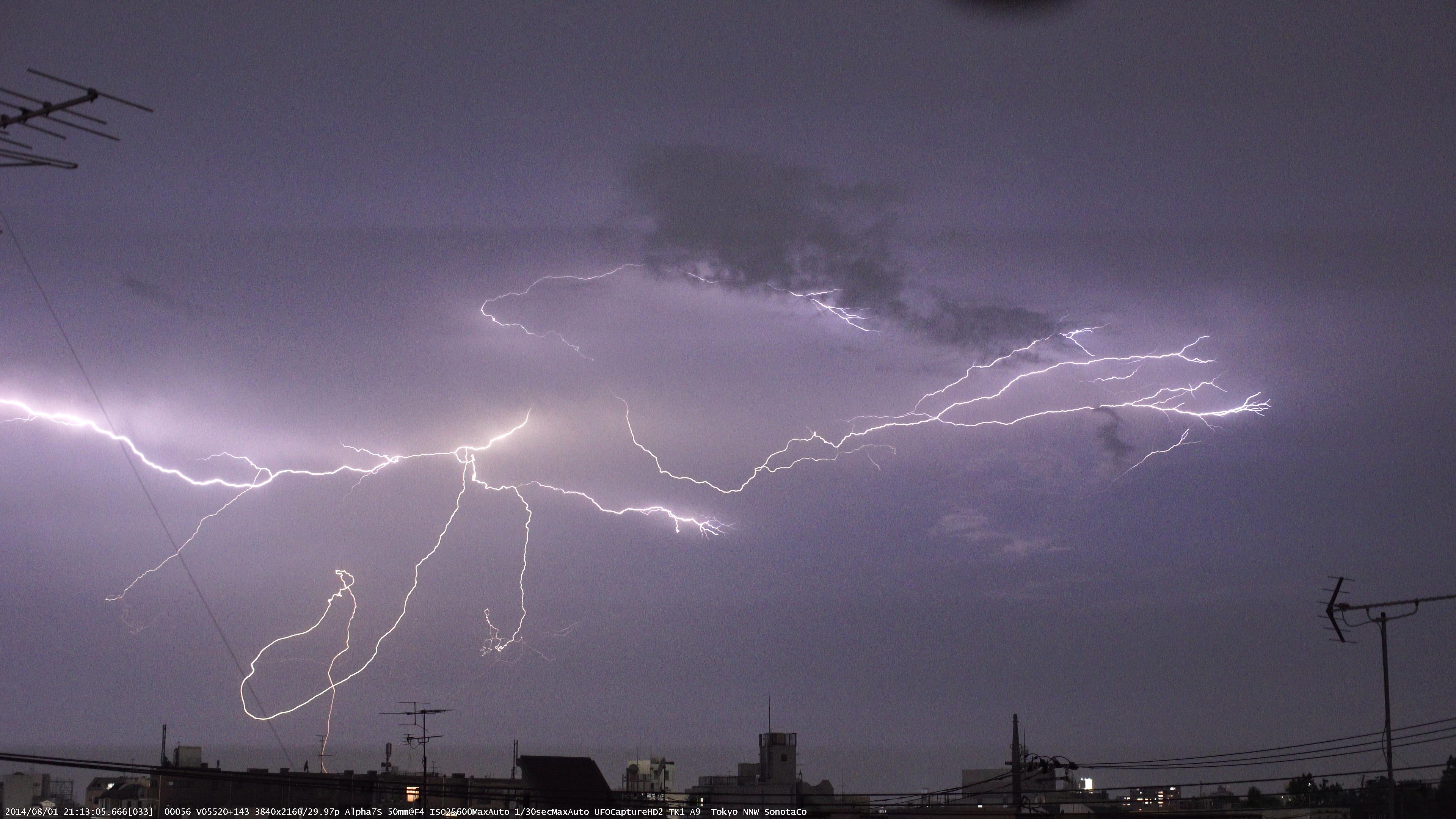 4K 30pで稲妻が沢山撮れたのでいくつか掲載します。