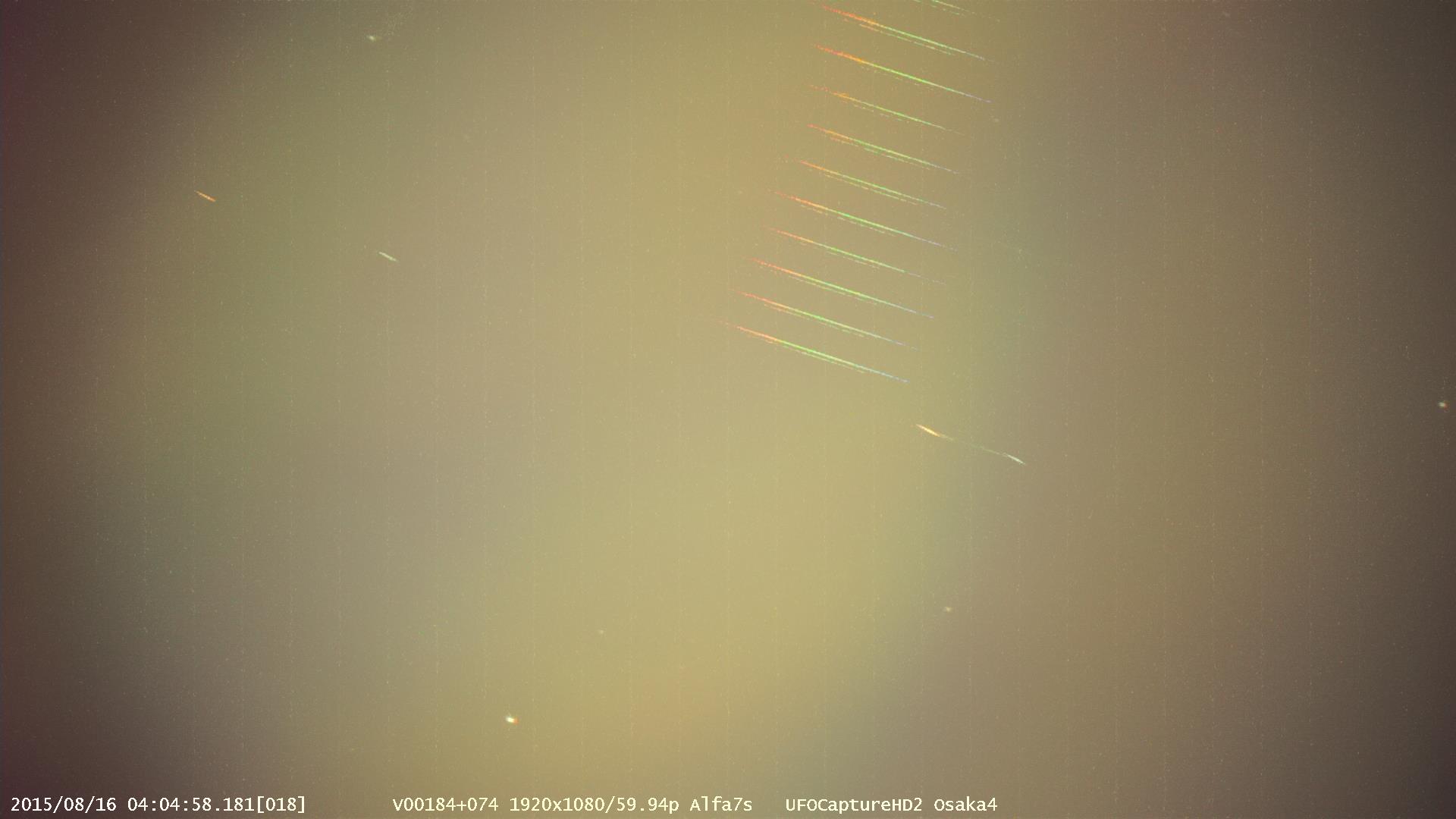 8月15日の例は、飛行機の点滅ライトをキャプチャーした例で、1コマ目(04時04分57.180秒)から817コマ目(04時05分00.817秒)までは、
