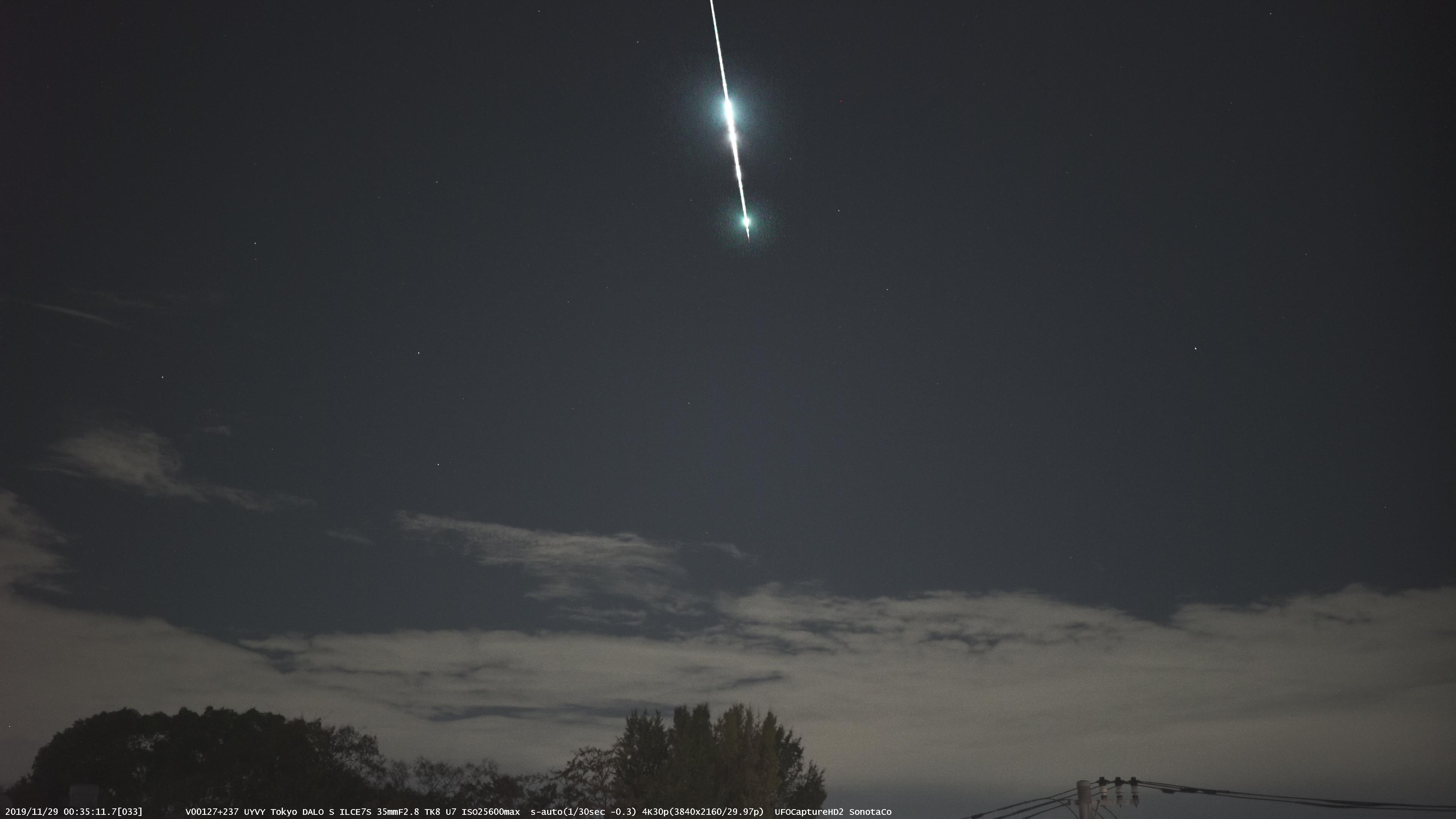 11月29日0時35分10秒に火球のスペクトルとカラーの本体が撮影できました。