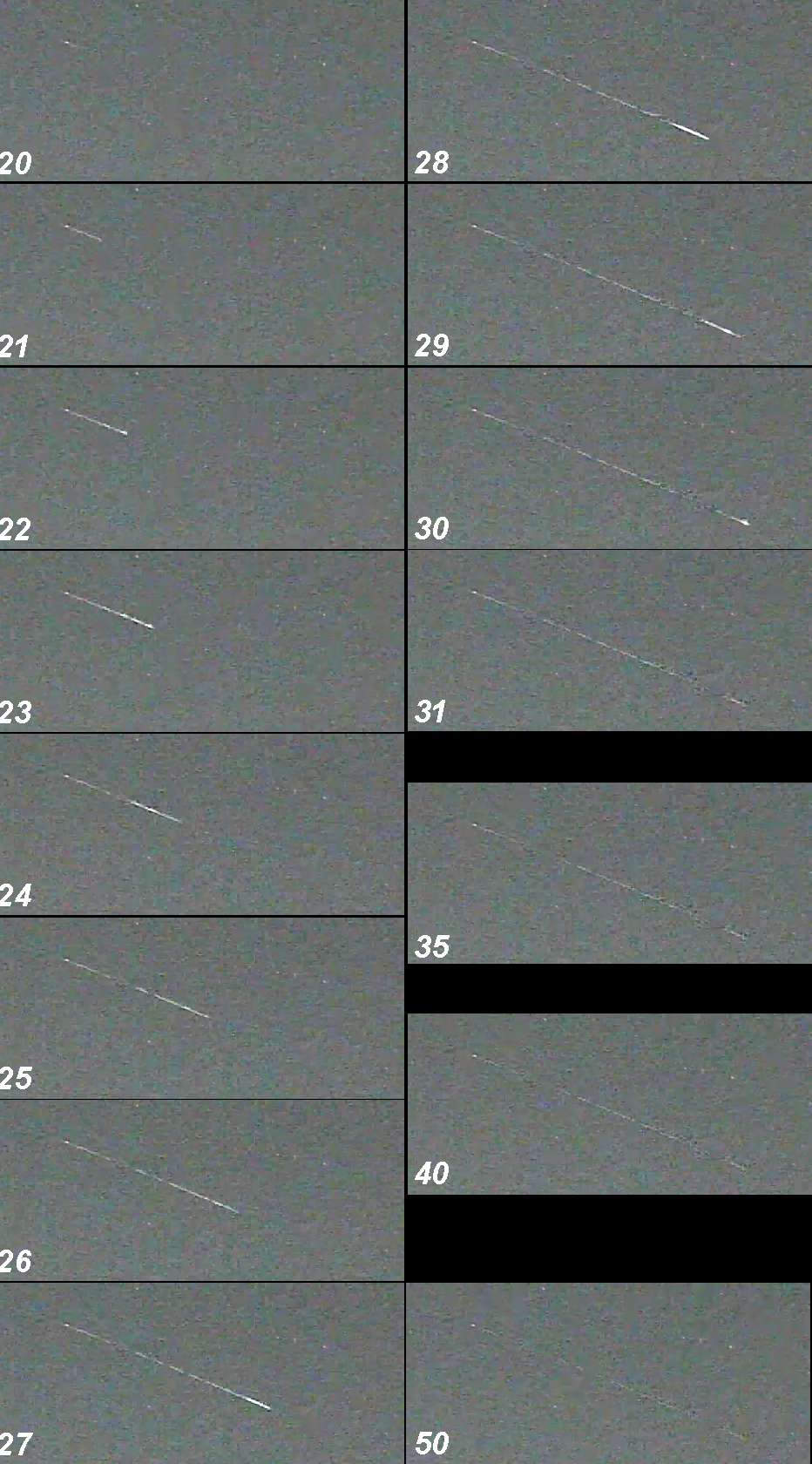 カメラ内部時計の狂い、転送遅延含め、前後5秒近い誤差がありますので、先日のGAKKYさんの火球動画のように20秒もずれていることもあり得ます。
